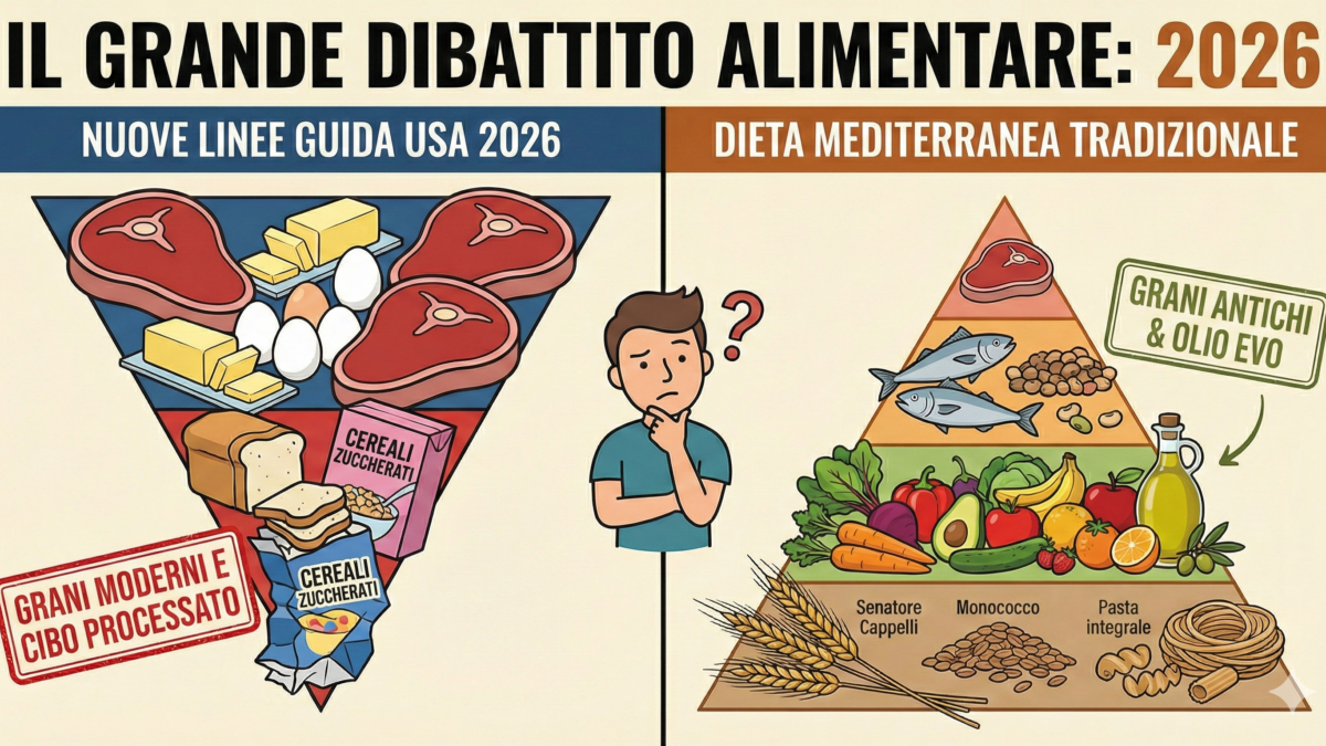 Qui entra in gioco la saggezza della Dieta Mediterranea, quella vera. La nostra piramide non mette al centro né la carne (che va limitata) né il cibo industriale. Mette al centro il vero grande assente nel dibattito americano: i Grani Antichi.